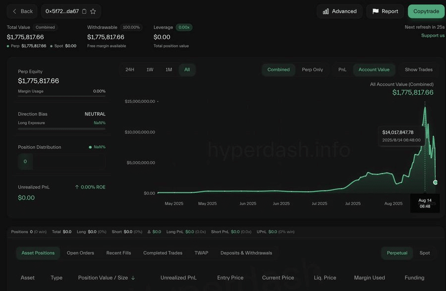 W pewnym momencie jego konto pokazywało ponad 43 mln USD equity. Zwrot? 344 razy więcej niż początkowa inwestycja. W społeczności pojawiły się komentarze, że to „trader stulecia” i przykład, że rynek nagradza odważnych. Problem w tym, że nagradza tylko wtedy, gdy zyski… zostają zrealizowane. W przeciwnym razie cała kasa jest tylko mirażem, który w każdej chwili z pałacu może zmienić się w drewnianą chatkę.