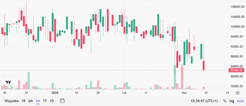 Na chwilę obecną kurs BTC oscyluje między 80 000 a 86 000 USD. W momencie przygotowywania niniejszego tekstu do publikacji wynosił 82 500 USD.