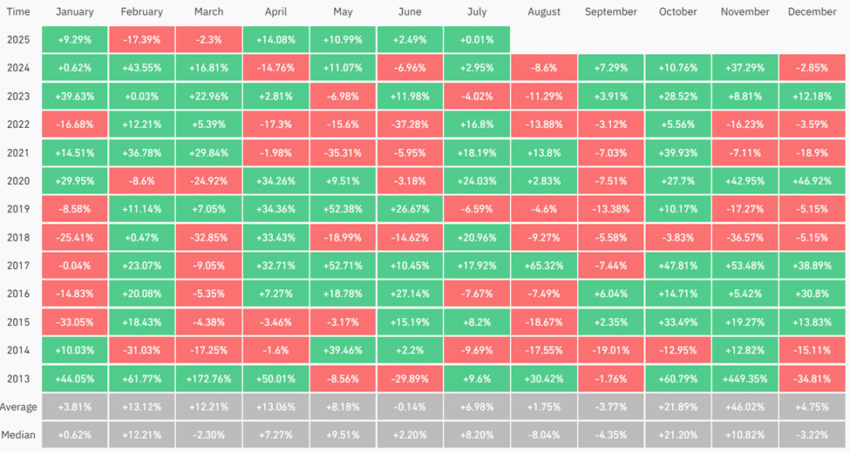 Czerwiec zakończył się rekordowo – Bitcoin osiągnął najwyższe miesięczne zamknięcie w historii. Kurs przekroczył 107 000 dolarów, co wielu inwestorów uznało za sygnał siły. Lipiec zaś, patrząc wstecz, również często przynosił wzrosty. Co więcej, amerykański indeks S&P 500 przez ostatnie dziesięć lat w tym miesiącu nigdy nie zanotował straty. Zatem czy historia znów się powtórzy?