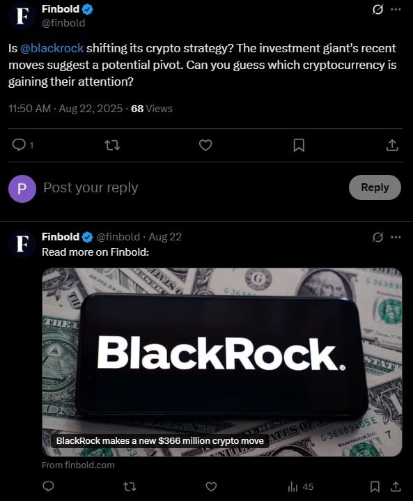 Kierunek odwrócił się w 21 sierpnia, kiedy BlackRock pozyskał 233,6 mln dolarów w ramach napływów do funduszy spotowych Ethereum ETF. 22 sierpnia napłynęło kolejne 109,4 mln dolarów.