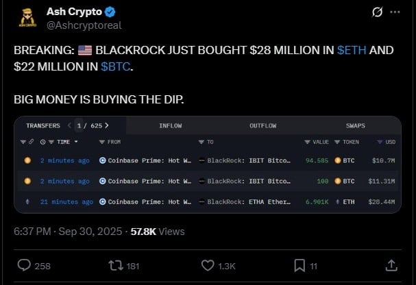 To dobry znak, ale nie jedyny. Kupują tzw. anonimowe wieloryby, ale również duże instytucje. Wczoraj BlackRock wydał 28 mln dolarów na ETH. Dla porównania na BTC wydał mniej, bo „zaledwie” 22 mld dolary.