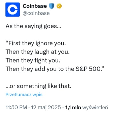 Coinbase właśnie zapisało się na kartach historii jako pierwsza firma stricte kryptowalutowa, która dołącza do prestiżowego indeksu S&P 500, wyprzedzając tym samym Strategy – znanego posiadacza największych rezerw Bitcoina wśród spółek publicznych.