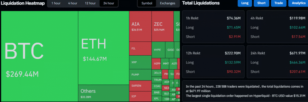 Największa pojedyncza likwidacja pojawiła się na platformie Hyperliquid i wyniosła ponad 15 milionów dolarów. To bolesny sygnał, który przypomina, że nadmierna pewność w tak zmiennym rynku często kończy się dramatycznie.