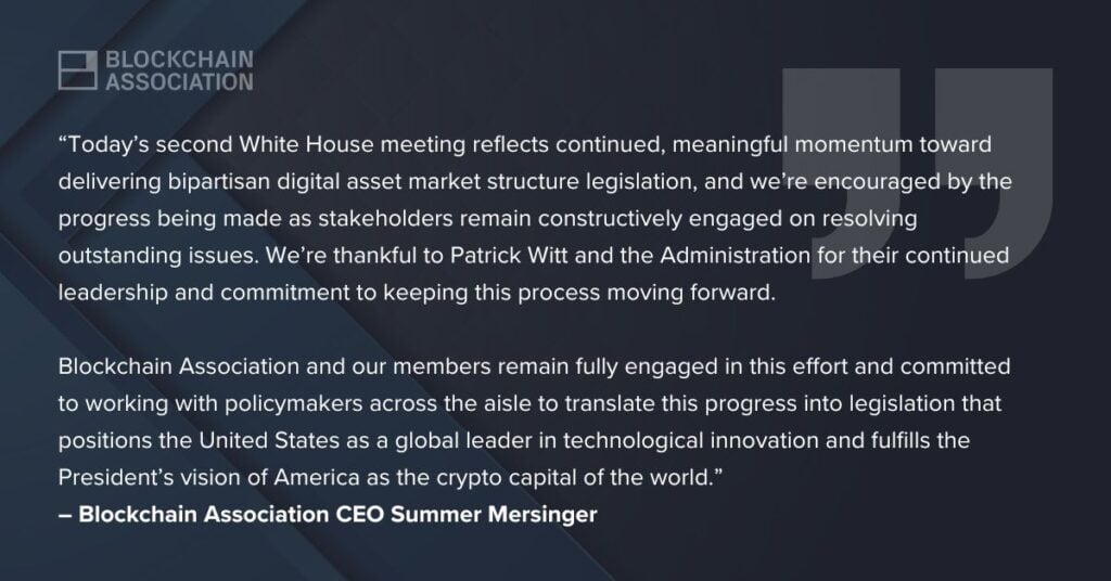 Kolejna runda rozmów w Białym Domu dotycząca ustawy o przejrzystości rynku aktywów cyfrowych nie przyniosła oczekiwanego przełomu, mimo wyraźnych instrukcji ze strony administracji Donalda Trumpa o konieczności wypracowania kompromisu.