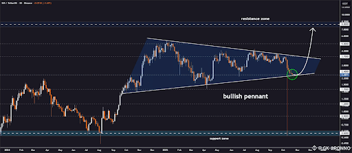 Sui (SUI) wystawia cierpliwość wszystkich na próbę — i może się to okazać warte zachodu. Token nadal utrzymuje poziom wsparcia na poziomie 2,38 USD, gdzie od tygodni gromadzą się aktywni nabywcy. Na dzień 23 października 2025 r. cena SUI wynosiła około 2,46 USD. Tworzy byczą formację chorągiewki, którą wielu kupujących postrzega jako ciszę przed burzą.