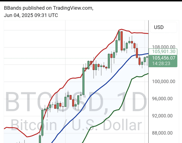 John Bollinger – analityk o statusie legendy, twórca słynnych wstęg Bollingera – zwrócił uwagę, że na wykresie Bitcoina pojawił się rzadko spotykany układ „Trzy pchnięcia w górę”. W praktyce są to trzy kolejne kontakty ceny aktywa z górną wstęgą kanału cenowego, którym towarzyszy coraz słabsza reakcja popytu. Bollinger opublikował wykres na platformie X w środę późnym wieczorem, dodając, że taki układ często zwiastuje zmianę kierunku rynku następującą po okresie euforii.