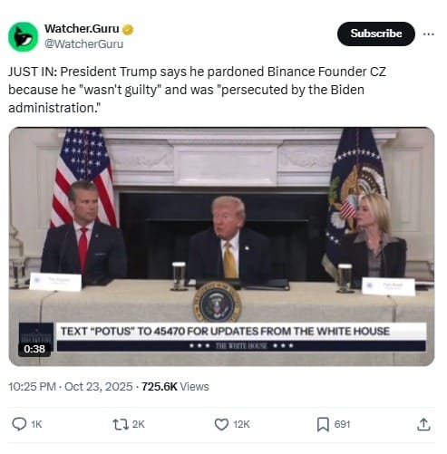 Ale los lubi zwroty akcji. 23 października Donald Trump ogłosił oficjalne ułaskawienie CZ, tłumacząc decyzję „rekomendacjami wielu osób” i dodając, że „wielu uważa, że CZ w ogóle nie był winny”.