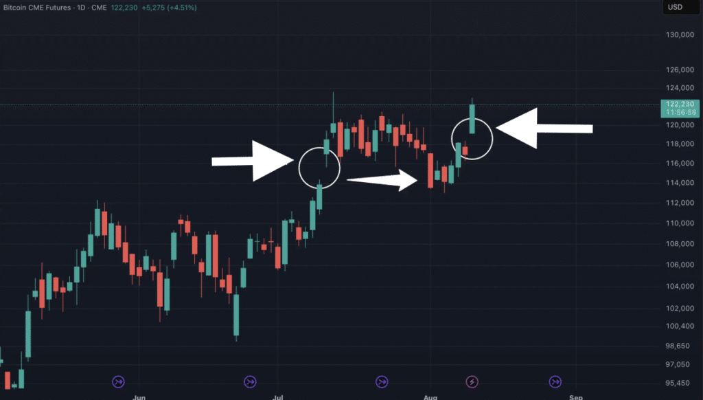 Luki CME często stają się miejscem, do którego cena wraca. W tym przypadku oznaczałoby to zejście w okolice 118 000 dolarów. Może się to wydarzyć w ciągu najbliższych tygodni.