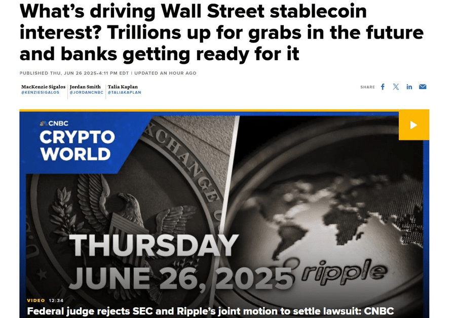 Co napędza ten trend? Z jednej strony rosnące ceny Bitcoina i Ethera (napędzane nadziejami na niższe stopy, łagodniejsze stanowisko Trumpa w sprawie ceł i chwilowe uspokojenie konfliktu na Bliskim Wschodzie). Z drugiej – gigantyczna zmiana w infrastrukturze finansowej. I stablecoiny są jej potencjalnym filarem.