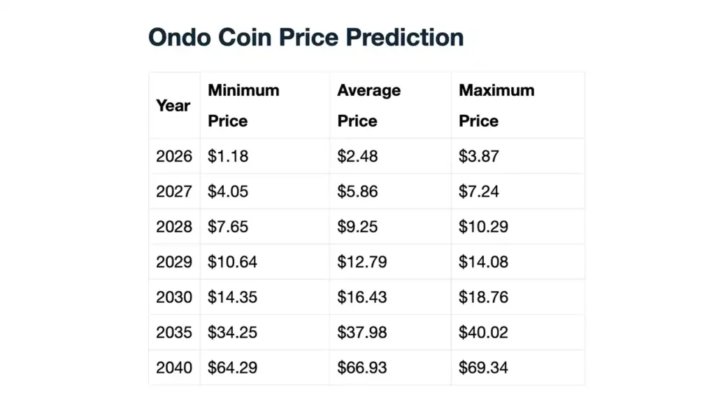 Perspektywy Telegaon dla ONDO są znacznie bardziej agresywne. Platforma szacuje, że do 2030 roku token może osiągnąć cenę od 14,35 do 18,76 dolarów. Jeśli te cele zostaną osiągnięte: