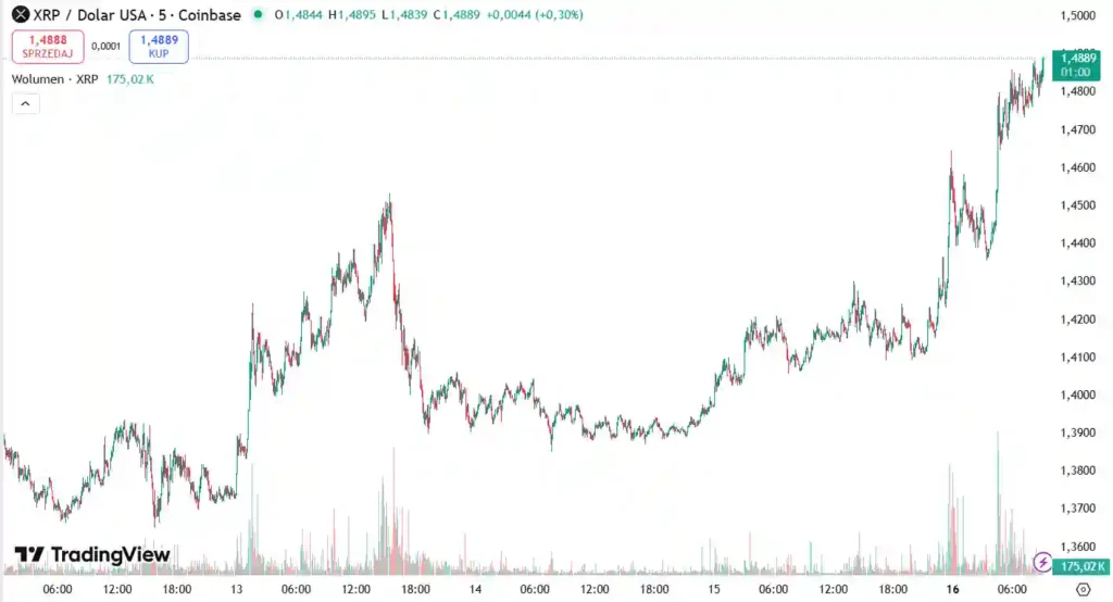 Obecna sytuacja na wykresie XRP sugeruje, że rynek przeszedł przez fazę akumulacji i jest gotowy na testowanie wyższych poziomów cenowych. Przełamanie bariery 1,40 USD, która przez długi czas stanowiła trudny do sforsowania opór, otworzyło drogę do ataku na przedział od 1,50 USD do 1,60 USD. Dane on-chain oraz statystyki z giełd instrumentów pochodnych potwierdzają, że za tym ruchem stoi realny kapitał, a nie tylko krótkotrwała spekulacja.