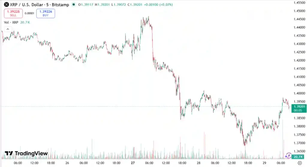 Kurs kryptowaluty XRP odnotował w ostatnich godzinach wyraźny spadek, przełamując kluczową barierę wsparcia na poziomie 1,40 USD.