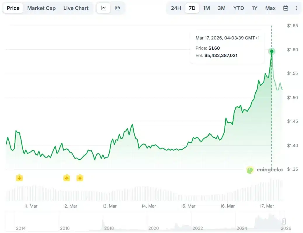 XRP wchodzi w nowy tydzień z impetem, ale odbija się od 1,60 USD