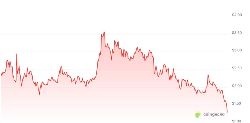 XRP przeżywa jedną z najcięższych korekt w obecnym cyklu bessy. W ciągu ostatnich 24 godzin coin Ripple stracił 13%, a w perspektywie 30 dni spadek sięgnął już 41%. Dzisiaj cena zanurkowała poniżej 1,30 USD, po przełamaniu kluczowego wsparcia 1,50 USD.