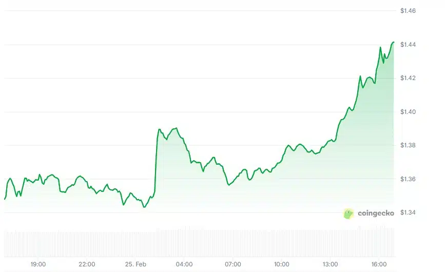Mimo pozytywnych sygnałów istnieje realne ryzyko, że to tylko chwilowe odbicie w trendzie spadkowym – tzw. dead-cat bounce. Scenariusz spadkowy pozostaje aktualny, dopóki kurs nie przebije 100-dniowej EMA, wskaźnik Supertrend nie zmieni koloru z czerwonego na zielony. Bez tych potwierdzeń wzrost może okazać się jedynie pułapką na byki (bull trap). Kluczowe poziomy do obserwacji to opór w okolicy 1,66 USD. Przebicie 1,66 USD zwiększyłoby szanse na większą falę wzrostową. Z kolei spadek poniżej 1,34 USD podważyłby strukturę odbicia. Dopiero trwałe wybicie powyżej kluczowych oporów potwierdzi początek nowej fali wzrostowej. Na ten moment rynek stoi na granicy między początkiem rajdu a klasycznym, krótkoterminowym odbiciem w trendzie spadkowym.