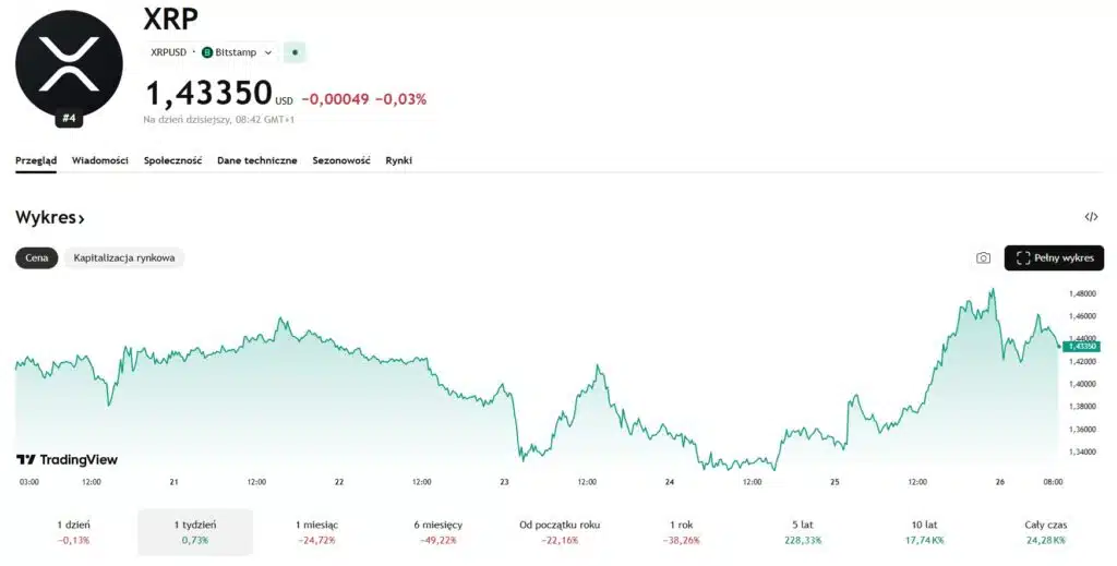 W środku tygodnia XRP nieco odrobił. W środę 25 lutego token w najlepszym momencie kosztował blisko 1,50 USD i w ciągu kilku godzin wzrósł o blisko 10%. To pozytywny znak, ale wciąż jest co odrabiać. Tylko od początku roku (Year To Date), altcoin stracił na wartości 19,62%.