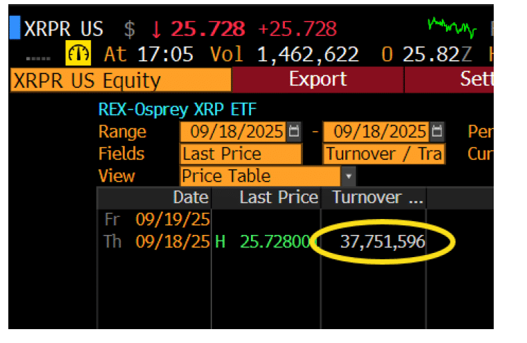 | Dzienne otwarcie ETF $XRPR | 24 mln USD w 90 minut |