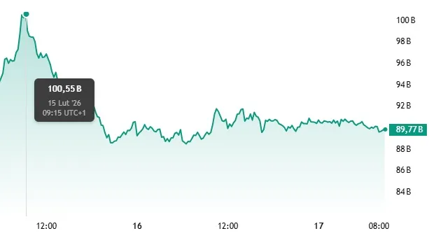 Pod koniec zeszłego tygodnia Ripple odrobił nieco strat i zyskał kilkanaście miliardów nowego kapitału. Między 13 a 15 lutego całkowita kapitalziacja rynkowa projektu wzrosła z 82 do prawie 101 mld dolarów. To i tak poziom daleki od szczytu, który w lipcu 2025 roku wyniósł 210 mld dolarów. Jednak w obecnych warunkach rynkowych taki ruch był optymistycznym sygnałem.