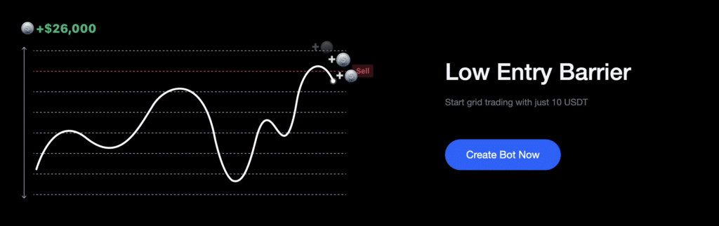 To świetna opcja, jeśli nie chcesz siedzieć przed wykresami. Nawet jeśli śpisz, bot wykonuje transakcje zgodnie z wcześniej ustalonym planem. Grid bot na MEXC działa również na rynku futures, co daje dodatkowe możliwości dzięki dźwigni.