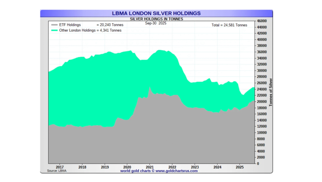 Przykład, co z tego wynika, dała w ubiegłych tygodniach sytuacja, jaka zapanowała w Londynie. Gigantyczny odpływ kruszców – który objął i srebro – do USA w ostatnich miesiącach 2024 roku i pierwszych miesiącach bieżącego, w związku z cenami zawyżonymi przez oczekiwania rynku dot. ceł obiecywanych przez Donalda Trumpa, w ogromnej skali „osuszył” z fizycznego metalu londyńskie skarbce, gdzie dotąd były one przechowywane.