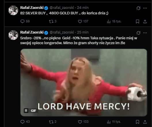 Znany polski spekulant, Rafał Zaorski poinformował, że o 'odwróceniu pozycji’ na metalach i obecnie 'gra na wzrosty’ cen kruszców. Jednocześnie rozgrywa krótkie pozycje na amerykańskim rynku akcji. Wydaje się jednak, że strach przed 'jastrzębim’ poglądem na politykę monetarną Warsha może okazać się 'pustym’ lękiem. Donald Trump wskazał, że Warsh chce obniżek stóp procentowych.