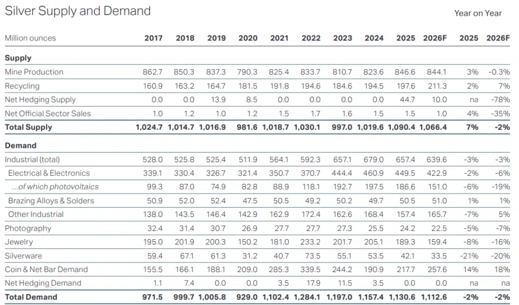 Na rynku srebra dzieje się coś, co spokojnie mogłoby być tematem numer jeden, ale nie jest. W cieniu złota i Bitcoina metal, który jeszcze kilka lat temu był traktowany trochę po macoszemu, znów wpada w strukturalny deficyt. I to nie pierwszy raz. Z najnowszego raportu World Silver Survey 2026 wynika, że globalny rynek srebra już kolejny rok z rzędu nie jest w stanie zaspokoić popytu. Zużywamy więcej, niż jesteśmy w stanie wydobyć.