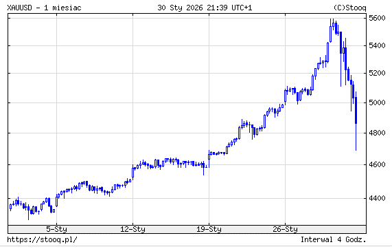 Na godzinę około 20:40 czasu polskiego notowania wyglądały jak po zderzeniu z ciężarówką: złoto (XAU/USD) było w rejonie 4 917 USD za uncję, a srebro (XAG/USD) po około 85,41 USD za uncję. Dolar kosztował plus minus 3,55 PLN, co daje orientacyjnie ~17 451 zł za uncję złota i ~303 zł za uncję srebra. To oczywiście liczby “z danej chwili” — przy takiej zmienności potrafią się szarpać co kilka minut.