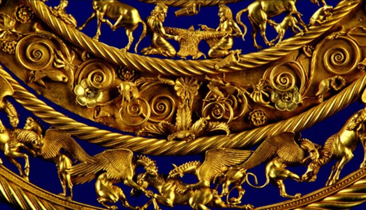 Chodzi o egzemplarze misternie zdobionej, złotej biżuterii, wykonanej przez Scytów. Lud ten zamieszkiwał (i zdominował) tereny nadczarnomorskie w głębokim antyku, od około VIII do III wieku przed Chr. Prócz „kontaktów militarnych” (tj. wojen) z sąsiadami utrzymywali oni również ożywione relacje handlowe ze światem greckim okresu archaicznego i klasycznego. Dzięki temu ostatniemu przetrwało wiele zabytków po nich, które oryginalnie trafiły w ręce greckich kupców.