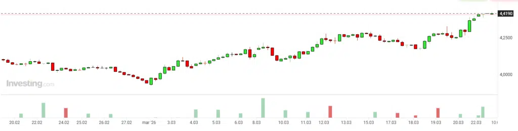 Złoto i srebro rozpoczęły poniedziałkowy handel od gwałtownej przeceny. Rano 23 marca złoto spadało momentami do okolic poniżej 4,1 tys. dolarów (ok. -9%) za uncję, a srebro traciło jeszcze mocniej. Skala ruchu jest na tyle duża, że goldbugi opisują go jako największy tygodniowy spadek złota od początku 1983 roku, a wielu traderów donosi wręcz o panice na rynku metali szlachetnych.