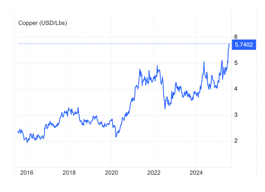 Nie tylko złoto i srebro regularnie przesuwa ostatnio granice górnych rekordów cenowych. Zjawisko to dotyczy również miedzi. Czerwony metal jest obecnie najdroższy od lat, zaś w liczbach bezwzględnych – nawet od dekad. Oczywiście w tym drugim przypadku należy uwzględnić, że dolar, w którym najczęściej podaje się wartość surowca, w latach 60 miał zupełnie inną wartość niż ten dzisiejszy. Niezależnie jednak od tego, fakt jest faktem – miedź jest rekordowo droga.
