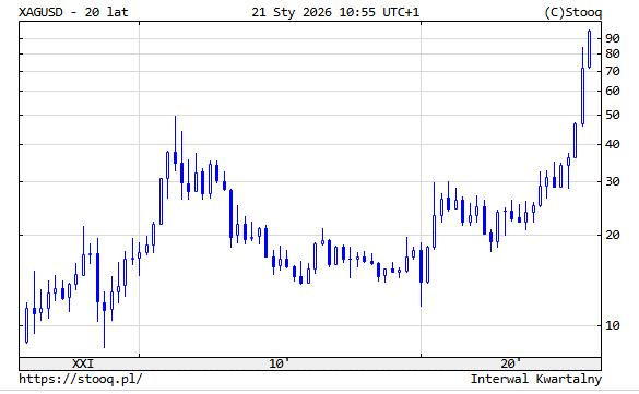 Rynek metali pokazuje zresztą, że pałeczka nie należy wyłącznie do złota. Srebro, które w ostatnich tygodniach wystrzeliło na północ z niesamowitym i niewidzianym od lat impetem również bije kolejne rekordy, zbliżając się do poziomu 100 dolarów za uncję kruszcu. Taki układ często pojawia się w momentach nagłego wzrostu niepewności: kapitał najpierw płynie do najbardziej płynnego i najpowszechniej postrzeganego zabezpieczenia, jednocześnie rozlewając się „przy okazji” na „młodszego brata”.