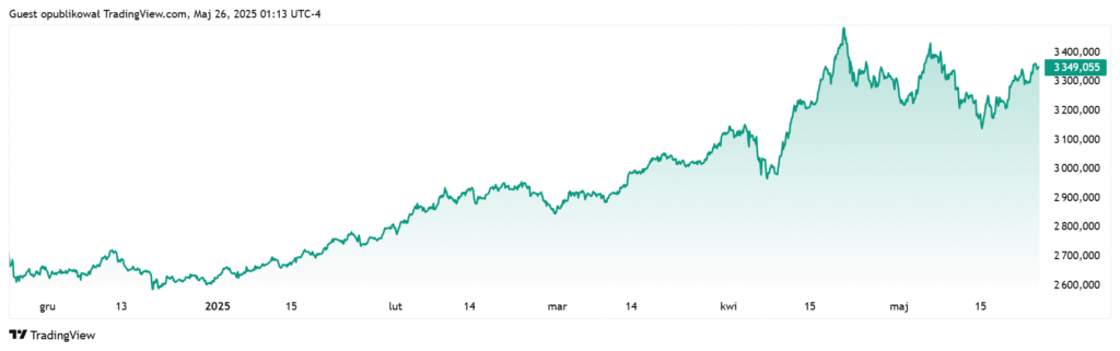 Wartość złota wzrosła w tym roku o 25%, bijąc na głowę S&P 500, który jest nawet lekko pod kreską. Wzrost zainteresowania był tak gwałtowny, że wyszukiwarka Google odnotowała boom na frazę “gold bars” w dniu ogłoszenia ceł na Kanadę i Meksyk oraz po obniżce ratingu USA przez Moody’s.