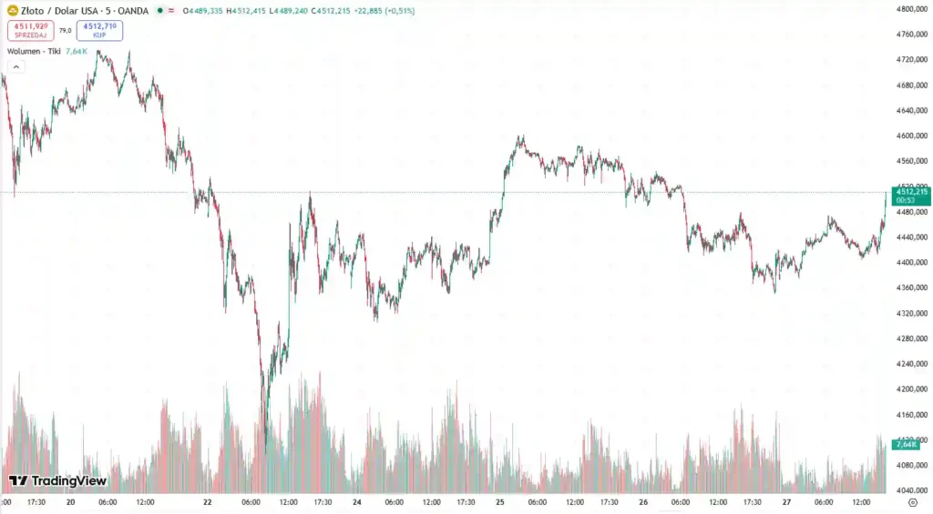 Obecnie notowania oscylują w okolicach 4510,48 USD, co budzi uzasadnione obawy o trwałość hossy na rynku metali. Analitycy Wells Fargo uspokajają jednak, że obecna przecena nie jest sygnałem trwałej słabości, lecz jedynie skomplikowaną reakcją na specyficzne uwarunkowania makroekonomiczne. Kluczowym czynnikiem hamującym wzrosty jest silny dolar amerykański oraz rosnące rentowności obligacji skarbowych, które podnoszą koszt alternatywny posiadania aktywów nieprzynoszących odsetek. Na platformie X ekspert rynkowy Peter Schiff zauważył, że złoto cierpi obecnie z powodu błędnego przekonania inwestorów o rzekomej sile dolara, która w rzeczywistości jest jedynie iluzją budowaną na wysokich stopach procentowych.
