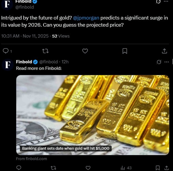 Chociaż w ostatnich tygodniach złoto wyhamowało swój oszałamiający rajd, który zakończył się na poziomie ponad 4360 USD, to zainteresowanie metalem nie słabnie. W ostatnich godzina znowu widać sygnały ożywienia i wzrostu zainteresowania tym aktywem.