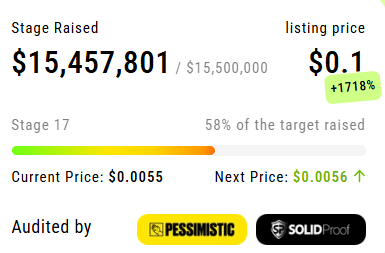 Do tej pory osiągnął połowę tej drogi, zbierając ponad 15 milionów dolarów, a cena tokena $XYZ obecnie wynosi $0.0055.