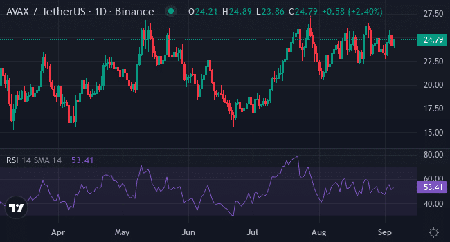AVAX handluje w przedziale od 22,31 USD do 25,23 USD po skromnym tygodniowym spadku o 0,35%. Ten niewielki spadek blednie w porównaniu z solidnym miesięcznym wzrostem o 13,43% i imponującym sześciomiesięcznym skokiem o 21,10%. Byki utrzymują kontrolę mimo wąskiego zakresu handlowego, a cena konsoliduje się w pobliżu 10-dniowej średniej na poziomie 24,52 USD, podczas gdy inwestorzy oceniają kolejne kierunki ruchu.