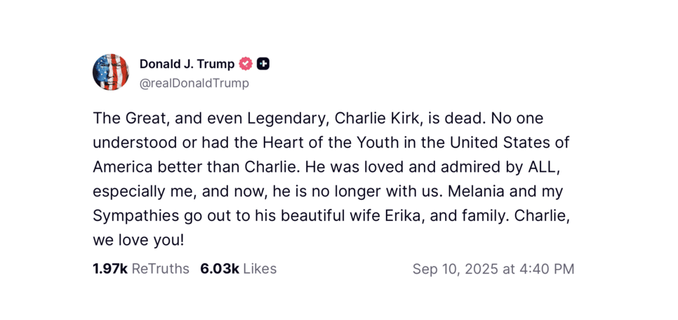 Informacje o śmierci Kirka potwierdzić miało niezależnie od siebie trzech oficjeli. Uczynił to także personalnie Donald Trump w poście na swoim portalu Truth Social.