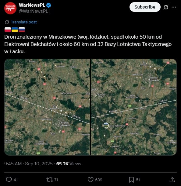 Kolejne szczątki drona znaleziono w miejscowości Czosnówka w bezpiecznej odległości od zabudowań, nieopodal torowiska. Szczątki jednego z dronów, który przekroczył polską granicę, znaleziono również w Mniszkowie w powiecie opoczyńskim (woj. łódzkie). Z nieoficjalnych informacji, jakie pojawiają się w mediach społecznościowych, wynika, że w tym przypadku maszynie skończyło się paliwo.
