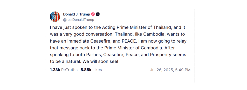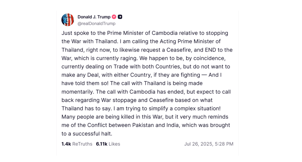 W sprawę szybko zaangażował się, w charakterze mediatora, prezydent USA, Donald Trump. Ogłosił, że negocjuje z obydwa krajami zawieszenie broni. W swoim stylu – grożąc jednym i drugim konsekwencjami handlowymi. Pozostaje zobaczyć, czy – tak jak w przypadku niedawnego konfliktu indyjsko-pakistańskego – okaże się to skuteczne.