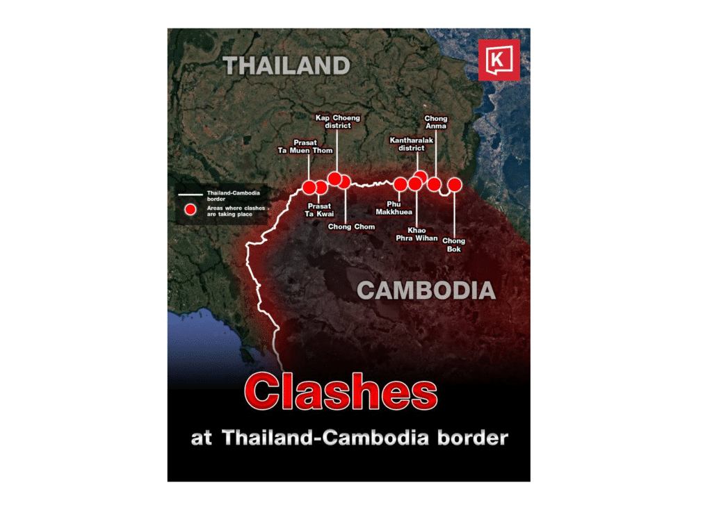 Pełnoskalowa wojna wybuchła w ostatni czwartek, przeradzając się z odizolowanych incydentów zbrojnych oraz zwłaszcza podkładania min na spornych terenach pogranicza. Intensywne starcia pomiędzy żołnierzami królewskich armii Kambodży i Tajlandii miały miejsce w okolicach świątyni Prasat Ta Muen Thom – arcycennego zabytku, który obydwa kraje uważają za element własnego dziedzictwa kulturowego.
