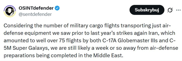 Analitycy wojskowi zwracają uwagę na bezprecedensową skalę amerykańskich przygotowań logistycznych które obejmowały już ponad siedemdziesiąt pięć lotów transportowych maszyn C-17A Globemaster III oraz C-5M Super Galaxy z systemami obrony powietrznej.