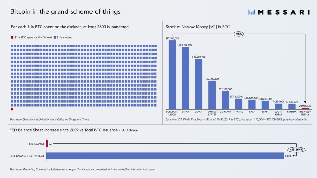 Na każdego wydanego dolara amerykańskiego (USD) w Bitcoinie (BTC) na darknecie przypada 800 wypranych dolarów.