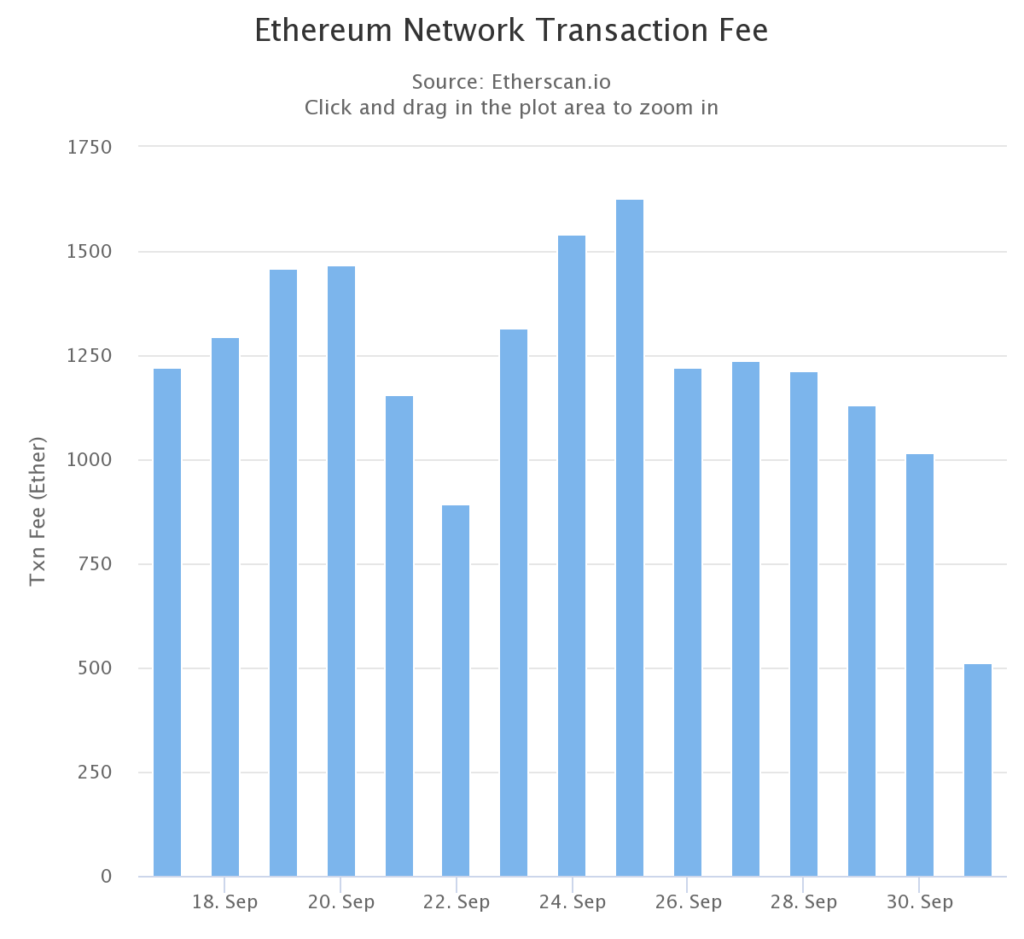 Uwagę obserwatorów przykuł fakt, kiedy w ubiegłym miesiącu opłaty transakcyjne uiszczane przez użytkowników Ethereum przekroczyły opłaty użytkowników Bitcoin. W rzeczywistości, 22 września średni przelew ETH kosztował między 0,045 USD do 0,064 USD, podczas gdy opłata Bitcoin za potwierdzenie wyniosła zaledwie 0,03 USD.